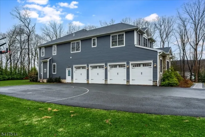 This 5,300-square-foot residence in a premier Brookside, cul-de-sac neighborhood offers a rare opportunity for newer construction on 2.26 gated acres. Enhanced far beyond its 2020 origins, this five-bedroom estate provides a fully self-sustaining, turn-key lifestyle. The open-plan layout features a gourmet kitchen with JennAir appliances opening to the breakfast area and the 2-story great room with a gas fireplace and back staircase. The first floor also includes formal living and dining rooms, a private office, a conservatory/family room with a gas fireplace, and a full guest suite. The primary wing is a true sanctuary, featuring a sitting room with a two-sided fireplace, a spa-caliber bath with radiant flooring, and expansive walk-in closets. The lower level serves as a professional entertainment hub with a media room, exercise area, rec room, and full bath. Outside, the grounds are a private oasis with stunning views featuring a heated saltwater pool with a 40-foot stone patio, a regulation basketball court, and integrated irrigation. Engineered for uninterrupted comfort, the property includes a commercial-grade Generac generator supporting the entire estate. The water system was modernized in 2024/25 with a new well pump and holding tank for peak reliability. Complete with a finished heated four-car garage and a fabulous mudroom. With easy access to NYC transit and 35 minutes to Newark Airport, 5 Buddy Lane offers an unparalleled level of luxury, utility, and convenience.