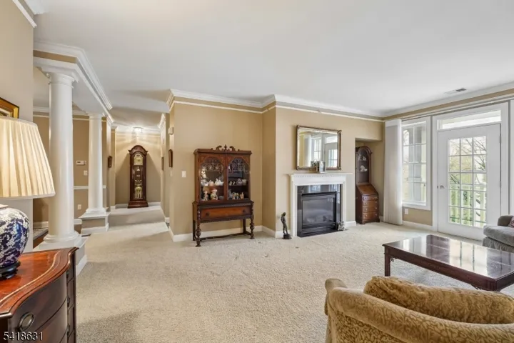 Welcome to the Active Adult (55+) community at Four Seasons in Cedar Grove. This highly desirable Orchid model offers approximately 1,949 square feet of comfortable living space and is situated on the second floor of an elevator building with underground parking and additional storage.The unit features two spacious bedrooms plus a versatile office/den, a formal dining room accented by elegant columns, and a large living room with a cozy gas fireplace. Both the living room and the primary bedroom open to private balconies, providing inviting outdoor spaces and beautiful green views. The bright, eat-in kitchen comes fully equipped and is filled with natural light. Additional highlights include two full bathrooms, a convenient in-unit laundry room, and abundant closet space throughout. Residents enjoy access to an active clubhouse lifestyle, featuring a swimming pool, fully equipped fitness center, game room, billiards room, tennis courts, and pickleball courts, along with a variety of social activities. Ideally located with easy access to public transportation to NYC, as well as shopping, cultural attractions, downtown Montclair, and major highways.