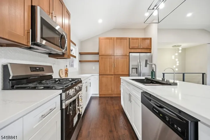 Luxury living with new-construction quality (without the premium price or taxes!) This fully rebuilt,move-in-ready home offers refined finishes,smart technology,energy efficiency,and a private natural setting.Rebuilt from the studs,it features all-new high efficiency HVAC,plumbing,electrical,roof,windows,siding,mechanicals and tankless Wi-Fi wtr htr.Smart-home upgrades incl keyless Wi-Fi entry and Wi-Fi-enabled gar door.Custom driveway fits 6 vehicles and has easy turnaround for convenient entry/exit.Upstairs, a sun-filled open-concept layout showcases soaring 10-ft vaulted ceilings and seamless flow through the living, dining, and kitchen areas!Chef-inspired kitchen features oversized 8-ft island w/seating, custom cabinetry, quartz countertops, ss appl, and spacious hidden pantry.Sliding doors open to a private deck and paver patio for effortless indoor-outdoor living.The secluded yard offers wooded privacy, space to explore or hike, and beautiful mountain, lake, and sunset views.The primary suite has vaulted ceilings, 3 closets, and spa-style bath w/dbl vanity and glass shower. 2 addtl. bedrooms and a full bath complete the level.Downstairs offers flexible living space w.luxury waterproof laminate floors,a large family room,private office or guest area,full bath, laundry, mudroom,and direct garage access.Located in desirable Oakland near top-rated schools, parks, Crystal Lake Beach Club, shopping, dining, and convenient NYC commuting.One year builder’s warranty included!