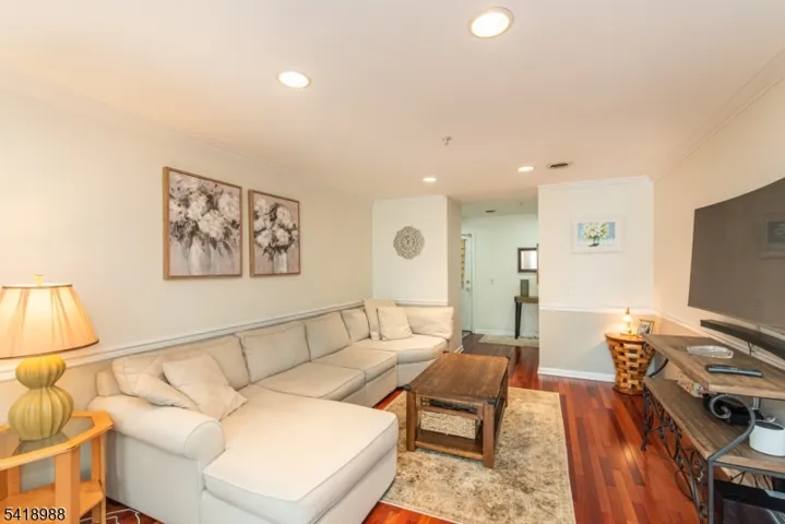 Tucked into the Lions Gate community, just moments from Caldwell’s downtown and nearby NYC transportation, this move in ready townhouse spans three levels. The main level is bright and open with hardwood flooring and a living area centered around a gas fireplace with a detailed surround. Sliding doors lead to a private deck with wooded views, bringing in natural light and a sense of privacy. The kitchen is finished with new stainless steel appliances, granite countertops, and a tiled backsplash, with a layout that connects directly to the dining area framed by arched openings. Upstairs, both bedrooms are generously sized. The primary suite features a large window that brings in natural light, along with its own full bath and walk in closet. The second bedroom is served by an additional full bathroom. The lower level is finished and adds additional living space with a lounge area, wall mounted TV, and bar setup along the back of the room. The layout provides room for both seating and recreation. Ground level direct access to the garage adds convenience. Recent updates include a new HVAC system replaced within the past year, along with the washer, dryer, and hot water heater all replaced within the past two years. Set within Lion Gate, this location provides access to restaurants, shops, and NYC transportation while maintaining a quieter residential setting.