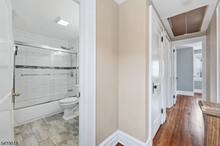 Gracefully set in the Gregory section of West Orange, directly across from Hazel Avenue Elementary School, this well-kept Colonial blends timeless architectural beauty with the warmth of enduring craftsmanship. Rich wood flooring, classic trim work, quality original doors, and thoughtful millwork speak to the home’s lasting character, while a wood-burning fireplace brings charm and focus to the main living space. The formal dining rm flows naturally toward the kitchen and out to the rear deck, creating an easy setting for daily living and entertaining. The home offers 3 bedrooms, 2 full baths, with all bedrooms on the second floor. A pull-up attic provides added storage, and the partially finished basement expands the usable space with room for recreation, laundry, a full bath, and separate storage. Outside, elegant paver work, a spacious deck, and a large green backyard create a beautiful backdrop for spring gatherings, outdoor dining, gardening,or quiet enjoyment of the season. A detached one-car garage and driveway parking complete the property. Conveniently located near Roosevelt Middle School, major roads, and nearby train access for commuters,the home offers both charm and practicality. Framed by mature greenery and traditional proportions, the exterior carries the same sense of permanence and grace found throughout the interior. Set on a lovely residential block, it offers curb appeal and a setting that supports relaxed living and entertaining throughout the year well!