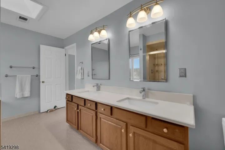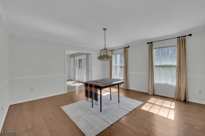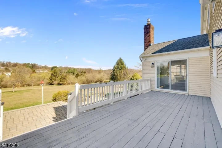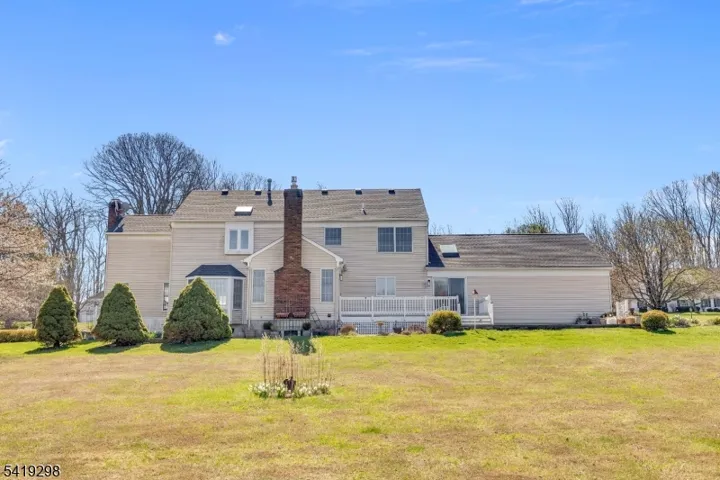 Nestled in the center of Chestnut Run, this center hall colonial is waiting for its new loving owner to make it their own! Features include spacious rooms, 2-story paneled library with wood burning fireplace, large center island eat-in kitchen with skylight and sliders to deck overlooking expansive yard! Welcoming foyer leads to huge formal dining room with hardwood flooring and formal front to rear living room, also with hardwood flooring. Family room has gas fireplace and wet bar, as well as sliders to deck. Laundry room and powder room complete the first floor. Second floor features primary suite with large walk-in closet, full bath with jetted tub and stall shower, 3 additional bedrooms and guest bath with double vanity. There are pull down stairs to attic storage, as well as a huge unfinished basement for storage or finishing. Other highlights include roof installed in 2020, Tesla charger in garage, newer exterior doors, columns and shutters, skylights with electronic shades and EV Tesla charger in garage and new garage side entrance door with extra room for workbench/storage. Family Room TV remains; Excellent Chester schools, West Morris Mendham High School, short drive to Gladstone NJ Transit Train, quaint downtown Chester, local parks and trails makes this the perfect place to call your next home!