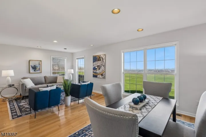 Enjoy stunning and breathtaking UNOBSTRUCTED NYC SKYLINE views from this contemporary bright and quiet END-UNIT townhome with 2-car garage in gated Eagle Ridge. This beautifully maintained home features 3 bedrooms, 2.5 baths, and HARDWOOD FLOORS throughout. The main level boasts a dramatic GREAT ROOM / Family Room with cathedral ceilings, wood-burning fireplace, wet bar, and sliding glass door to a huge private DECK overlooking the NYC skyline, perfect for entertaining. The updated eat-in kitchen includes granite countertops, tiled backsplash, pantry, and a bright breakfast room. Upstairs, the primary suite offers a full bath with skylight, TWO sinks and TWO walk-in closets, along with two additional bedrooms and a full bathroom. Additional highlights include high energy efficient windows, recessed lighting, CENTRAL A/C and Heat (4 yrs old), water heater (2 yrs old), siding (2017), attached 2-car garage, and convenient first-floor laundry. Enjoy resort-style living with 24-hour gated security and premium amenities including Indoor & Outdoor pools, playground, PICKLEBALL/TENNIS/RACQUETBALL COURTS, Clubhouse with sauna, conference rooms with kitchen, and gym. Pet-friendly community with beautifully maintained grounds. Prime location with easy access to shopping, dining, and major highways, NYC buses right outside the gate, Jitney Services to and from Midtown Direct Train, ideal for NYC commuters.