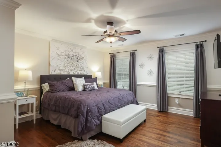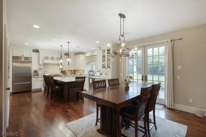 Set on 1.7 flat, beautifully open acres, this exceptional 12 year old Colonial blends timeless elegance with modern luxury in the heart of Basking Ridge. A grand 2-story foyer with marble floors and double coat closets creates a striking first impression, while abundant natural light and exquisite custom millwork elevate every space. At the heart of the home, the gourmet kitchen showcases marble countertops, premium stainless steel appliances, and custom cabinetry. The adjoining eating area opens to a bluestone patio via French doors and flows seamlessly into the stunning family room, where coffered ceilings and a floor to ceiling, stone wood burning fireplace create warmth and architectural interest. The formal living room with a marble surround gas fireplace and the large dining room adds an elegant touch for formal gatherings. The primary suite offers a serene retreat with tray ceilings, a custom fitted walk-in closet, and a luxurious bath with custom cabinetry, oversized shower, soaking tub, and private water closet. Four additional bedrooms include a dual-access en suite and a Jack & Jill bath. Thoughtfully designed, the home also features a 2nd-floor laundry room, a spacious mudroom with built-in cubbies, a back stairway, and a finished basement complete with an office, rec room, game area, and a full bath for exceptional flexibility and style.