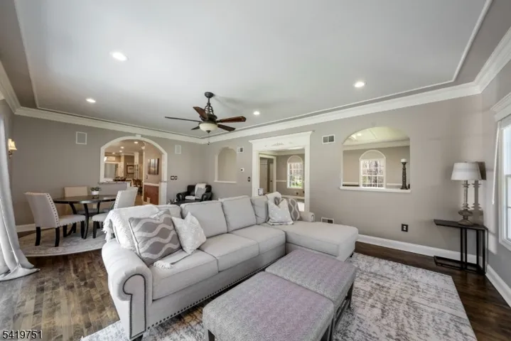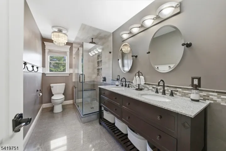 Set in Woodshire Estates, one of Montville’s most desirable sections, this impressive 5 bedroom, 3.5 bath colonial offers space, design, and a layout that works. A grand 2 story entry welcomes you in and sets the tone for the scale and light found throughout the home. The bright kitchen features a commercial-grade 6 burner range, pot filler, warming drawer, and high end finishes. The dining room makes a statement with a custom lighted drop ceiling, while hardwood floors and recessed lighting flow throughout the home. A large formal living room with gas fireplace adds to the generous main level layout. Added convenience of a first floor bedroom off the kitchen, which can be used for an office, or enjoy the added storage, perfect for organization. Upstairs, the primary suite offers a rare setup with a huge walk-in closet, private gym, and a spacious laundry room, all within the suite, along with a stunning bath. All bathrooms throughout the home are finished with gorgeous design. Custom closets are featured in all second floor bedrooms. The finished basement with a full bath adds flexible space for recreation, work, or guests. Outside, the large backyard is open, spacious, and ideal for both relaxing and entertaining. With five bedrooms, beautiful finishes throughout, and a long list of features, this is a home that needs to be seen in person to fully appreciate. EV charging station, generator, upgraded 200 amp electric, indoor/outdoor speakers, & Verizon Fios available.