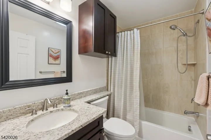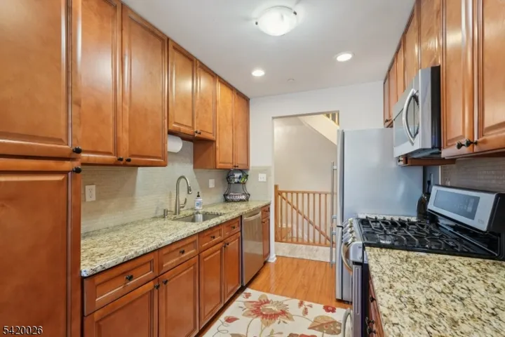 Look no further–10 Years young! This sophisticated condo was totally rebuilt from top to bottom in 2016. LR features vaulted ceiling with gas fireplace, a custom built-in bar with granite counter, beverage refrigerator with bookcase above. Sliding glass door to sunny deck. Kitchen has beautiful tall wood cabinets with plenty of storage space, granite countertops, stainless refrigerator, microwave, & range, ne garbage disposal. Adjacent dining area. 1The Madison”. Hardwood flooring throughout, Custom Hunter Douglas blinds on windows and sparkling light fixtures, 6-panel doors. Truly move-in condition. Storage unit. Water & sewer included in maintenance. Enjoy pool, tennis and beautifully maintained grounds in desirable Ridge Gardens.