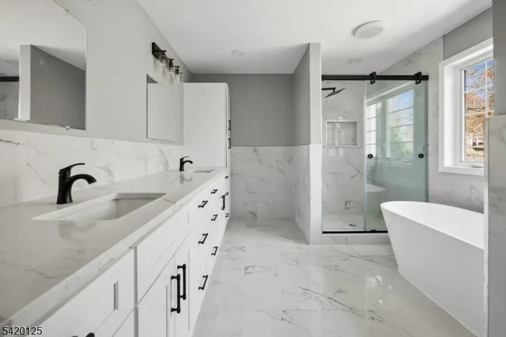 Welcome to this private, fully renovated residence on a dead-end street where modern luxury meets thoughtful design. Every inch of this 6-bedroom, 4.5-bath modified split-level has been meticulously transformed to be as functional as it is beautiful. The expansive living room flows seamlessly into the formal dining area, creating an ideal space for both everyday living and elegant entertaining. The recently updated kitchen features sleek stainless steel appliances, modern finishes, and ample space for the home chef. Whether hosting dinner parties or weeknight meals, this open, inviting layout delivers. Three generously sized bedrooms provide comfortable retreats. The standout is the bedroom with its own ensuite bath offering privacy and convenience. A full bath serves the two additional bedrooms, each offering abundant closet space and natural light. Escape to the expansive primary suite a true retreat featuring not one, but two walk-in closets plus additional closet space to accommodate even the most extensive wardrobe. The luxurious ensuite bath provides spa-like comfort, while the dedicated sitting area is large enough for a full couch and television, creating the perfect space to unwind, read, or enjoy your morning coffee in complete privacy. The ground-level floor offers a versatile den/FR perfect as a home office or casual gathering space complemented by a convenient half bath. This level offers endless possibilities for how you live and work.