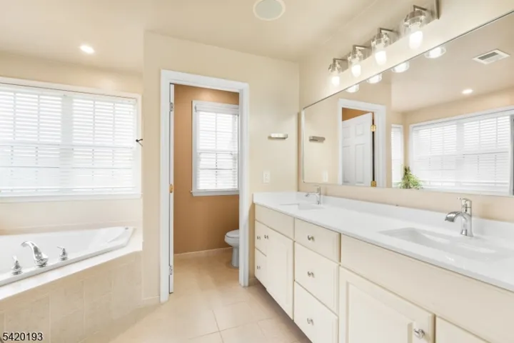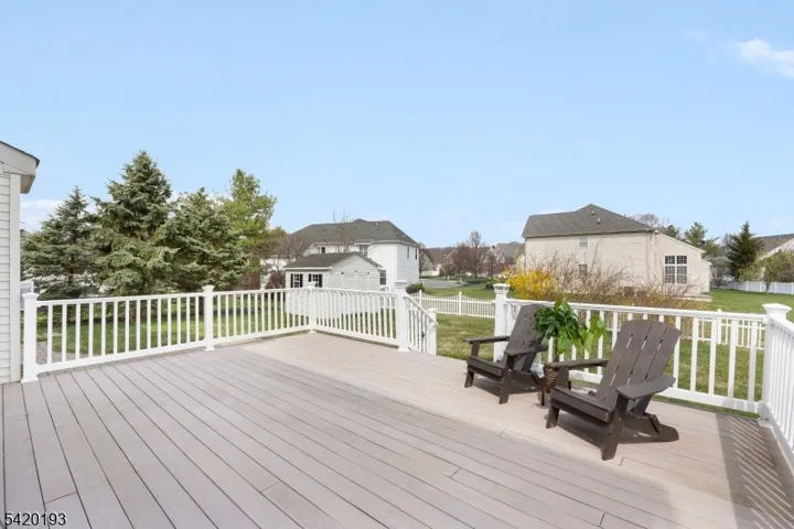 Welcome home to this lovely 5 Bedroom Bainbridge II Model, loc in the Water’s Edge community. It’s near Spruce Run and Round Valley Reservoir. Spacious grand Foyer welcomes you into the home, featuring tray ceilings & lots of natural light. The first floor is appointed w stunning architectural molding, hardwood floors that flow seamlessly throughout the space, and a formal Living rm & a private Study. The Dining rm offers plenty of space for large gatherings. The Great rm is 2 stories w a full wall of windows, a gas fireplace & open to the updated Kitchen. The Kitchen boasts high-end ss appliances, incl 30″ wall ovens, center island, granite countertops & tile backsplash & a large pantry. Separate breakfast area was extended 4′ & features a window seat & a door that leads to an outside Trex deck with steps down to a paver patio for hosting guests. House boasts of complete wired sound system which is perfect for entertaining. Head upstairs to hardwood floors throughout, the primary suite boasts of a walk-in closet & en-suite bath complete with double sink vanity, soaking tub, & separate shower. There are 4 additional bedms & a full hallway bathrm. Fin bas is a truly impressive bonus with over 1500 sf & extra tall ceilings. A perfect Recreation rm 30 x 15 and Game rm 19 x14. New engineered hardwd flrs installed. Located w close proximity to Blue Ribbon schools, shopping, restaurants, & major highways incl RT. 78 & free Park & Ride to NYC bus. Bonus are all public utilities