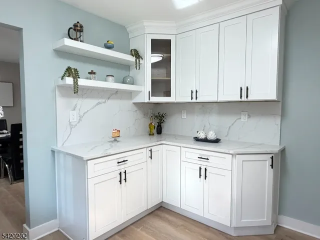 Beautifully renovated and move-in ready, this West Milford home offers bright, open living spaces, waterproof luxury vinyl flooring, and stylish modern finishes throughout. The updated kitchen features white shaker cabinets, quartz countertops with matching quartz backsplash, open shelving, and stainless steel appliances. Spacious living and dining areas flow effortlessly and are anchored by a stunning fireplace. Additional family room and basement spaces offer flexibility for a rec room, home office, gym, or guest area. Updated bathrooms showcase sleek tile work, modern vanities, and contemporary fixtures. Light-filled bedrooms include a lovely primary suite with private bath. Major upgrades include a new roof, new siding, new windows, and a new Roth above-ground oil tank. Complete with a one-car garage and a stream running through the property, this turnkey home blends style, warmth, and functionality.
