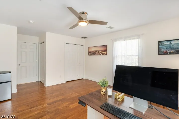 Welcome to 8 Dean Court where comfort, connection, and everyday living come together. Nestled on a quiet cul-de-sac, an uncommon setting in Rutherford, this thoughtfully designed contemporary Colonial offers approximately 2,800 sq ft of inviting living space. A welcoming entry opens to a layout that flows effortlessly between living, dining, and kitchen areas, anchored by a fireplace room that creates a warm setting for both daily living and gatherings. The kitchen features cherry cabinetry, granite countertops, stainless steel appliances, and a center island, complemented by white oak hardwood floors throughout. A rear entry with mudroom, powder room, and laundry area adds everyday convenience. Upstairs, the primary suite includes spacious closets and a bath with a hot sauna and double vanity. Two additional bedrooms and a full bath complete the level, along with an open overlook. The top floor offers a versatile space suited for additional living, work, or recreation. The expansive backyard includes a hot tub spa, patio, and paver walkways, offering space for outdoor enjoyment. A detached garage adds storage and functionality. Located just moments from schools, parks, shops, and dining, with nearby bus and train access to NYC and an approximately 20-25 minute drive to Manhattan, this home offers both accessibility and a well-connected setting.