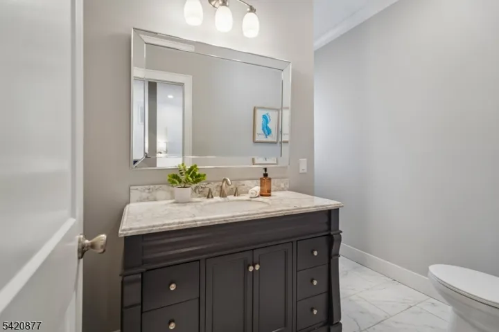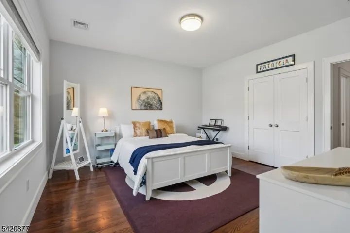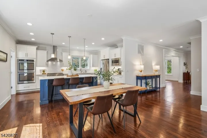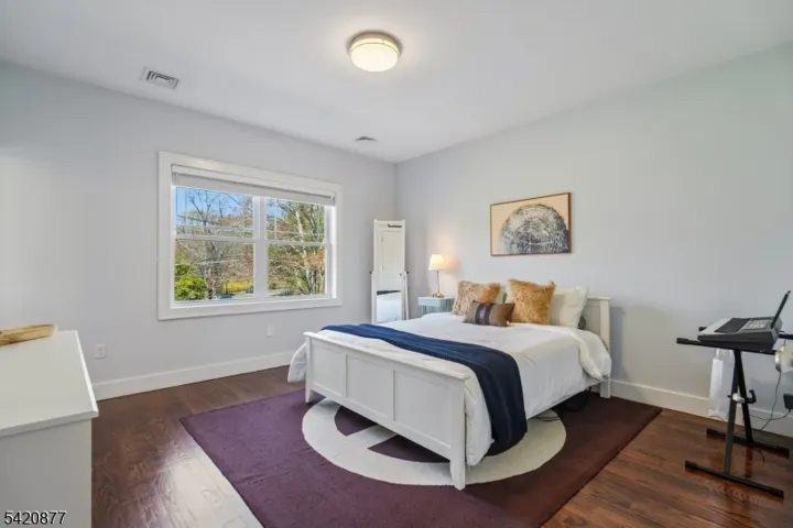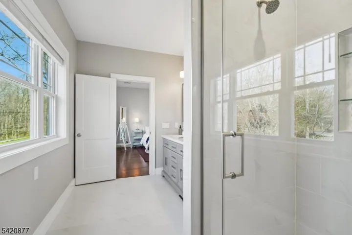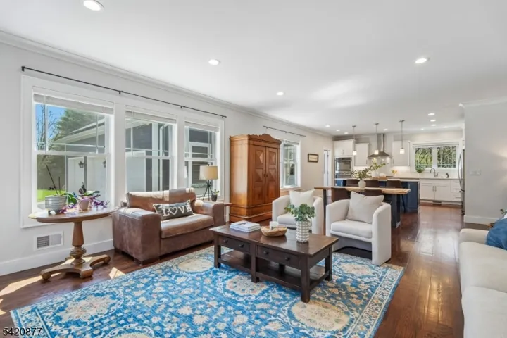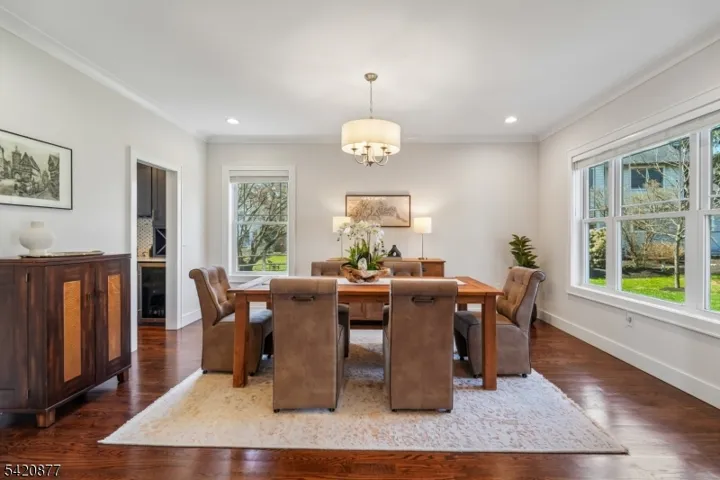 This exquisite Colonial set on a private, tree-lined property in prestigious Basking Ridge offers refined living at every turn. The custom designed 5-bedroom, 4 full bath residence blends sophisticated style with modern comfort. A sun-drenched open floor plan showcases soaring ceilings, rich hardwood flooring, and exquisite millwork, creating an elegant yet inviting atmosphere. The chef’s kitchen is a true centerpiece, featuring quartz countertops, bespoke white cabinetry, a striking designer blue island, and premium stainless steel appliances, complemented by a walk-in pantry and butler’s pantry for seamless entertaining. The kitchen flows effortlessly into the expansive family room anchored by a gas fireplace, perfect for both intimate gatherings and large-scale entertaining. A thoughtfully designed mudroom with custom built-ins adds everyday convenience. The luxurious primary suite offers a serene retreat with a tray ceiling, dual walk-in closets, and a spa-inspired bath with double vanities and an oversized glass-enclosed shower. Additional bedrooms are generously appointed, including a Jack & Jill bath and a separate hall bath. The full-height basement presents endless possibilities for customization. Surrounded by mature trees, the property offers exceptional privacy with room to create a resort-style outdoor oasis. Ideally located near top-rated schools, fine dining, shopping, and major commuter routes this is a rare opportunity to own a truly exceptional home.