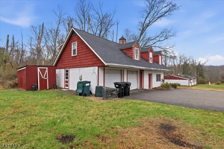 You turn into the driveway and the space immediately stands out, 2.57 level acres offering room, privacy, and clear potential just minutes from Flemington. Inside, the layout opens with a kitchen and breakfast bar flowing into the living and dining area with a fireplace, plus a den or office, two bedrooms, and a full bath on the main level, while upstairs includes a primary suite, an additional bedroom, another full bath, and walk in attic storage. The home is fully dated and in need of renovation throughout. Outside, a detached two car garage includes three separate living spaces, and a 1,800 square foot masonry barn previously used for horses, offering significant flexibility and potential. This property is being sold strictly AS IS. Ideal for contractors, flippers, or investors looking for a full renovation project with strong upside, not suited for a traditional homeowner seeking move in condition.