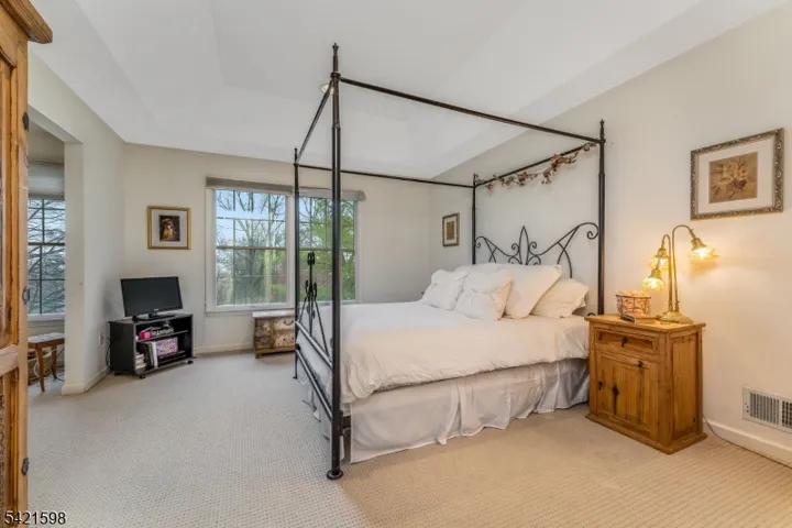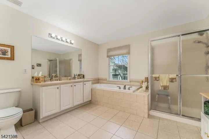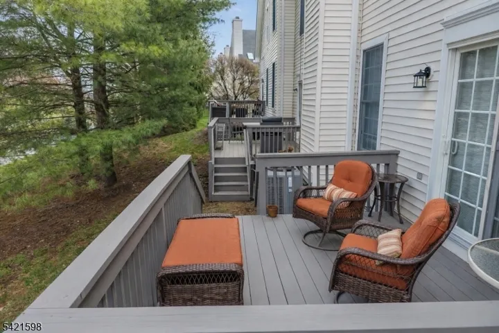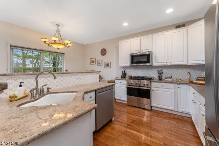 This 2-bedroom interior townhome located in the prestigious Beaver Brook Country Club community, offering a bright, open floor plan. The living room features a marble-surround gas fireplace and recessed lighting. The beautiful eat-in kitchen is appointed with 42-inch cabinets, granite countertops, a custom tiled backsplash, upgraded appliances, and recessed lighting. The breakfast area opens through sliding doors to a deck, creating a perfect extension of the home for relaxing or entertaining. Hardwood flooring runs throughout the first level.Upstairs, the spacious primary suite offers a sitting room, walk-in closets, and private bath. The upgraded primary bath features tile flooring, a Corian vanity, a large soaking tub, and a separate stall shower. The second bedroom includes two walk-in closets, and the second full bath also features tile flooring and a Corian vanity. the second level also includes a convenient laundry closet.The unfinished basement offers endless potential for future living space, storage, or recreation, and is complemented by a two-car garage.