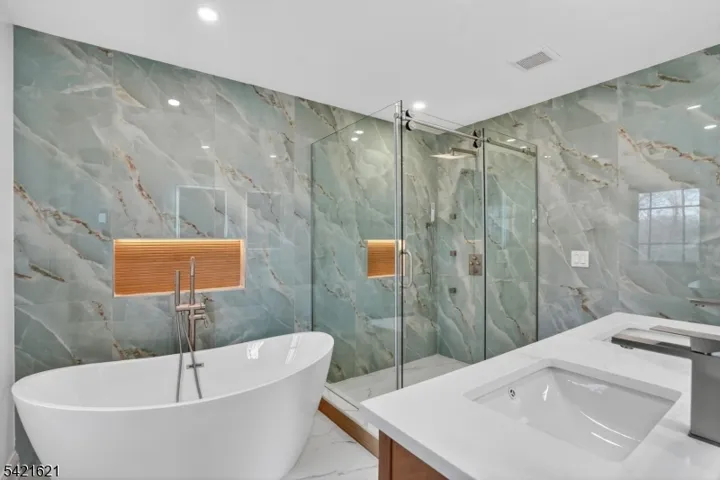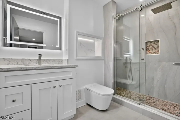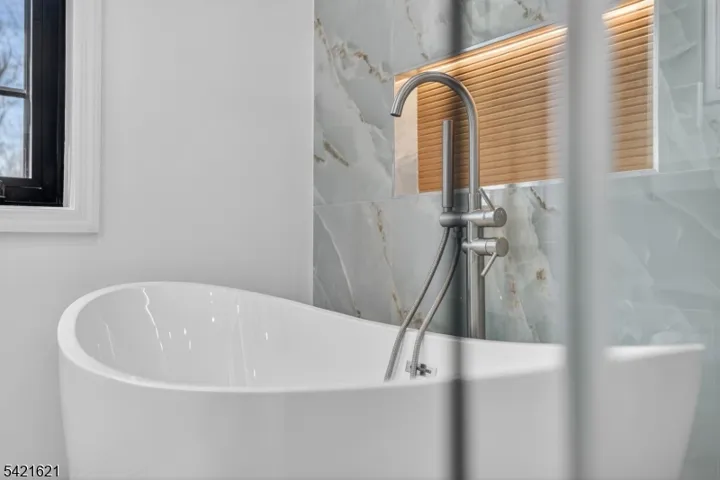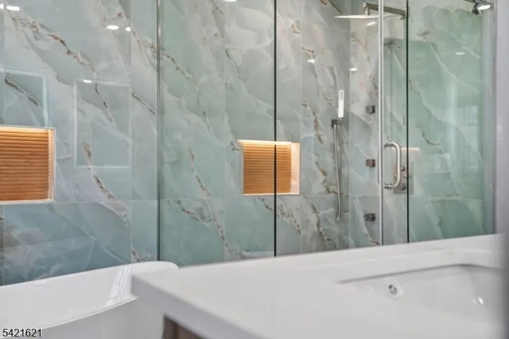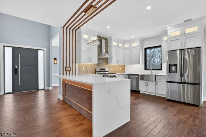 This stunning 5-bedroom, 5.1-bathroom new construction masterpiece seamlessly blends contemporary flair with timeless elegance. A grand two-story foyer entrance leads into an open-concept floor plan defined by high ceilings, rich hardwood floors, and an abundance of natural light coming through oversized, black-frame designer windows. A chef’s kitchen is complemented by a sophisticated butler’s pantry featuring integrated wine storage and illuminated display cabinetry. Do not miss the first floor ensuite bedroom. Architectural excellence is on display, from the sleek modern doors and custom millwork to the designer staircase accented by wrought-iron spindles. A magnificent primary ste with vaulted ceilings, huge walk-in closet. The spa-inspired primary ensuite is a retreat, boasting floor-to-ceiling book-matched porcelain, a deep freestanding soaking tub, and a curb-less glass rainfall shower. Each of the 4 bedrooms is generously proportioned, with access to designer-tiled full bathrooms for owners and guests alike. Walkout basement featuring a custom wet bar, wine cooler and a full bath along with a dedicated media/office room for cinematic experiences or quiet office. A perfect balance of suburban tranquility and modern convenience, situated just minutes from Westfield’s award-winning schools, the vibrant downtown, and direct NYC commuter links. High-efficiency multi-zone HVAC and recessed LED lighting throughout. More than a home it is a lifestyle of unparalleled luxury.