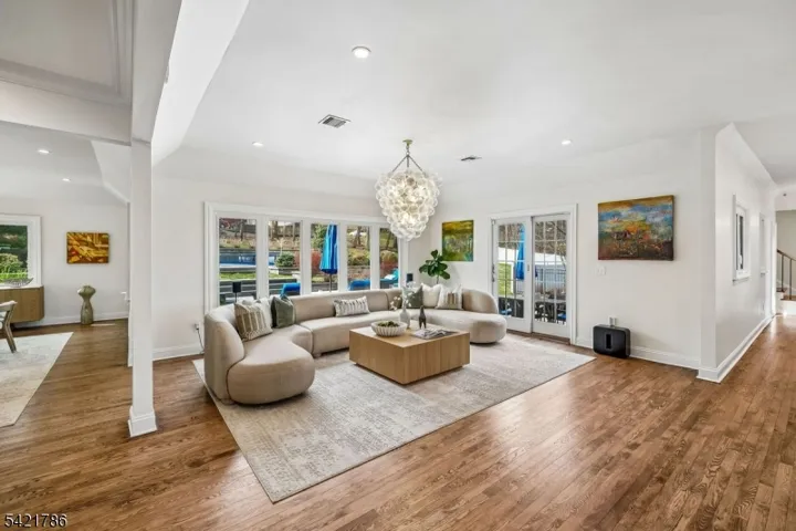 Absolutely stunning, this fully renovated 6-bedroom, 5 full and 2 half bath raised ranch is perched on a hilltop and drenched in natural light, offering tranquility, relaxation, and a seamless connection to nature where everyday living feels like a vacation. The open layout connects expansive living spaces including outdoors, ideal for today’s work-from-home lifestyle, This smart home features two solar rooftop systems, all new double-pane windows, and energy-conscious upgrades. The outdoor oasis is unmatched, with a heated in-ground pool, fully equipped pool house with kitchen and full bath, and bluestone patios perfect for dining, lounging, and outdoor movie nights.The formal yet inviting living room showcases dramatic architectural detail, a wall of windows capturing sunrise and NYC skyline sunset views Plans are available for the 3,100 SF basement, where walls, French drains, and five sump pumps are already in place. At the heart of the home is the chef’s kitchen and family room, featuring custom Spanish cabinetry, high-end appliances, and a 15′ x 6′ island with prep sink, wine cooler, and seating for six, plus a separate dining area. A 1st fl laundry rm off the mudroom 3 distinct sleeping/work zones provide flexibility: A 1st fl primary suite w/ fireplace, dressing room, walk-in closet, & bath, plus a 1st fl bedroom w/bath a 2nd-fl south wing – 3 bedrooms and hall bath; a private north wing studio bedroom with its own staircase, bath, and sink. A garage w/ EV charger.