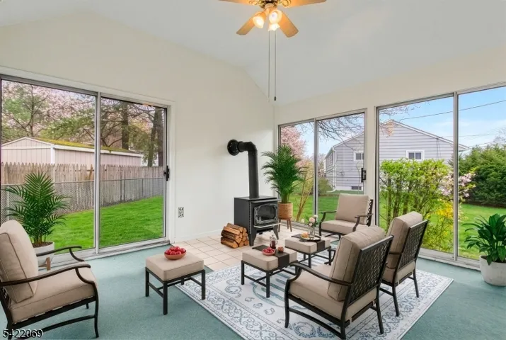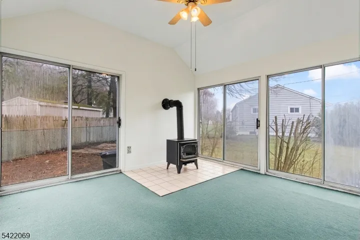 Opportunity awaits in this ranch-style home on a lovely corner lot in a quiet neighborhood. Excellent potential and priced accordingly, just bring your vision and updates to make this home your very own. A welcoming front deck provides a pleasant space to relax and enjoy the surroundings. Inside, the home features 3 bedrooms and hardwood floors throughout the first level. From the kitchen, enter into a three-season room with a cathedral ceiling, four sets of sliding doors, and a cozy wood-burning stove, creating a fabulous space to enjoy. The full basement offers potential for additional living space, providing flexibility for future expansion. The home is serviced by public water with gas available in the street. Conveniently located just minutes from major highways, the train station, restaurants, and shopping, making commuting and daily errands easy. Outdoor enthusiasts will enjoy the nearby hiking and biking trails and recreational facilities. This home is being sold as-is, inclusive of all appliances and the wood-burning stove. No known issues. Some photos enhanced and rooms virtually staged.