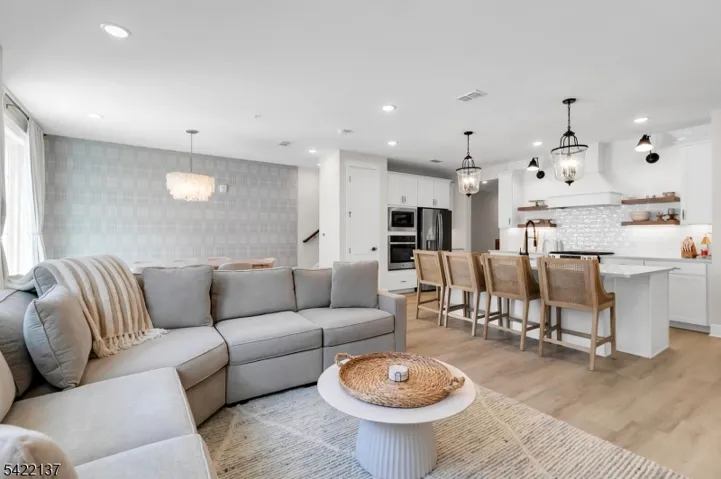 Discover refined, effortless living in this stunning 2-bedroom, 3-bath townhome in the desirable Hills at Warren community. Built in 2025 and professionally decorated, this sophisticated residence blends modern design with timeless appeal. Premium details abound, including wide plank LVT flooring, oversized baseboard moldings, designer tile work, and abundant storage solutions. The chef’s kitchen is built to impress with sleek white cabinetry, quartz countertops, a GE stainless steel double oven, stainless steel vent hood, and a large center island perfect for gathering and entertaining.The open-concept floor plan is filled with natural light and flows seamlessly for everyday living and elegant entertaining. The electric fireplace adds to the Inviting ambiance. The spacious Primary bedroom features its own ensuite bath, with both the Primary and Second bath highlighted by striking black fixtures set against pristine white finishes. Sliding glass doors open to a private patio, offering effortless indoor-outdoor living and a peaceful space to relax. Ideally located near major highways, shopping, dining, and more, this turnkey home delivers the perfect balance of luxury, comfort, and convenience.