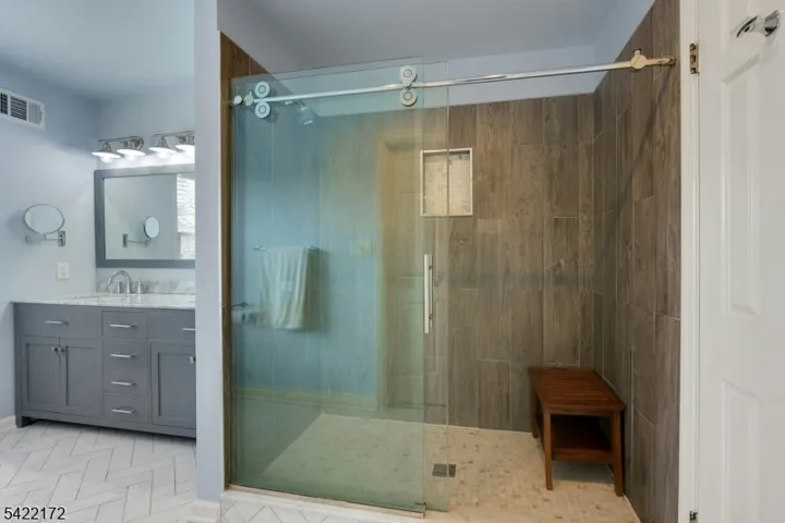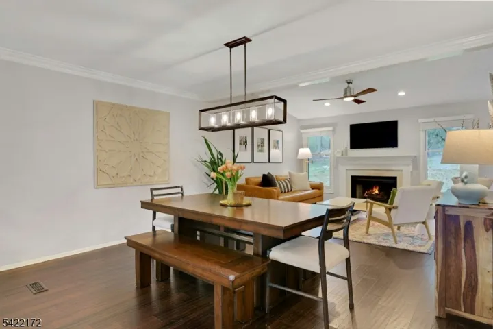 WOW! Welcome to this stunning, meticulously maintained and beautifully updated Shadowbrook end-unit in Harding Township, offering LOW taxes and move-in ready living! The open-concept first floor features updated flooring, crown molding, and abundant natural light, enhanced by new Pella windows throughout, along with a gas fireplace that creates a warm and inviting living space. The renovated kitchen, complete with quartz countertops, updated cabinetry, and stainless steel appliances, flows seamlessly into the main living and dining areas. Upstairs features two spacious bedrooms, each with its own en-suite bathroom, plus ample closet space throughout. The finished basement provides additional flexible living space with plenty of room for storage. Major upgrades include new HVAC (2022), hot water heater (2020), Trex deck with stone paver patio (2022), glass front entry door, LiftMaster garage openers, reverse osmosis system, Nest thermostat, WiFi-enabled lighting, and Ring security system. Conveniently located just minutes from downtown Morristown, shopping, dining, major highways (287, 24, 78), Morristown Medical Center, and Spring Brook Country Club. Turnkey, updated, and ready for its next owner this is one you don’t want to miss!