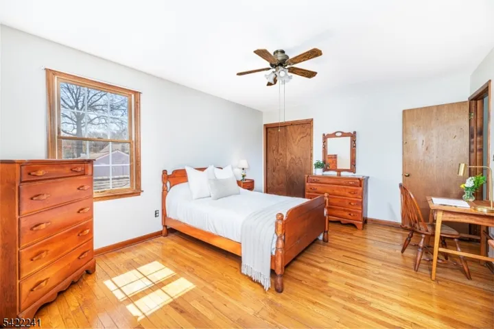A unique opportunity awaits! Offered for the first time in over 50 years, this lovingly cared-for expanded cape is filled with warmth, character, and pride of ownership. Located near the county park, NJ Transit, shopping, dining & major highways, it offers both comfort & convenience. This home is made for gathering, with plenty of space to relax & entertain. The main level features an updated kitchen & full bath, a bright living room, a formal dining room w/French doors to patio, a cozy den (potential 5th bedroom), an additional bedroom or office, an attached garage w/auto opener, and a first-floor primary bedroom that offers a peaceful retreat with access to a beautiful enclosed porch with sliders leading to a paver patio & fully fenced backyard. Upstairs, are 2 generously sized bedrooms (one has 2 closets) with beautiful hardwood floors, a full bath & attic storage. A very special home that has been cherished for decades, ready to welcome its next owners to create lasting memories.