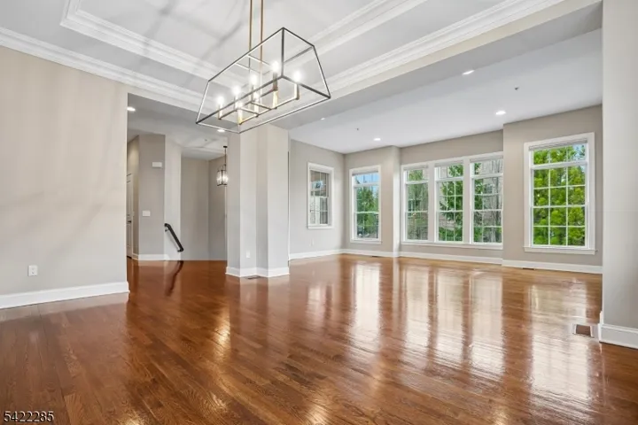 A rare offering in The Brownstones, this sophisticated end-unit townhome captures the timeless appeal of a classic New York-style brownstone in Convent Station. Set in a small, architecturally distinctive enclave with Belgian-block-curb streets, paver driveways, and patios, it offers quality construction, refined finishes, and exceptional flexibility. The location is a true lifestyle advantage, close to the train, Morristown Medical Center, Morris County Golf Club, downtown Morristown, dining, shopping & everyday conveniences. Approx. 4,000 sq ft features 9′ and 10′ ceilings, hardwood floors, designer lighting & Masonite raised panel doors. The main level includes an inviting foyer, expansive living and dining areas, and an open kitchen/family room with a gas fireplace, an oversized center island, granite counters, stainless steel appliances, a wet bar, a wine fridge, wine storage, and access to a spacious balcony. Upstairs, the primary suite offers a luxurious bath, walk-in closet, and finished attic access, while two additional bedrooms share a generous full bath. The ground level includes a large den, a private office or guest bedroom, a powder room, a covered patio & spacious garage with extra storage. Includes a designed space for a future elevator.Oversized two-car garage with storage and frost-free hose bib. A distinctive home offering elegant, low-maintenance living in one of the area’s most convenient settings.