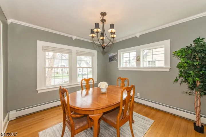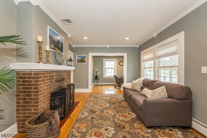 Nestled in one of West Caldwell’s most loved, picturesque neighborhoods, this sun-filled home blends classic charm with thoughtful updates and inviting outdoor living. Step inside to a warm, bright interior with freshly painted spaces, gleaming hardwood floors, and crown molding, complete with central air and hot water baseboard heat. The living room, centered around a charming brick fireplace, flows easily into a bright dining area and kitchen – ideal for everyday living and entertaining. The finished basement adds flexible space for a family room, playroom, and/or office, and includes a half bath and a spacious finished laundry room. The three-season porch is a true extension of the home, perfect for morning coffee while watching the sunrise and overlooking the backyard. Outside, the fully fenced yard offers privacy and space for pets, play, or relaxing, while a beautiful birch tree in the front provides shade in the summer. A locking gate over the driveway allows pets to roam free with added peace of mind. In the evening, hardwired landscape lighting adds a soft glow and improved visibility. Additional features inc a finished garage for storage or hobbies & a walk-up attic with radiant barrier attic insulation, offering great storage or potential for additional living space. Located near Richard Park, shopping & grocery stores all within walking distance. This home offers easy, everyday living in a truly special neighborhood