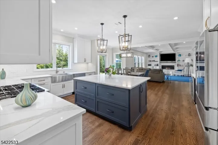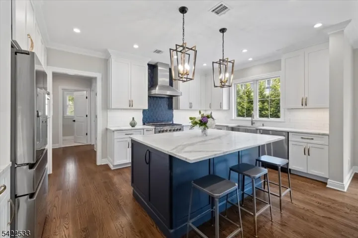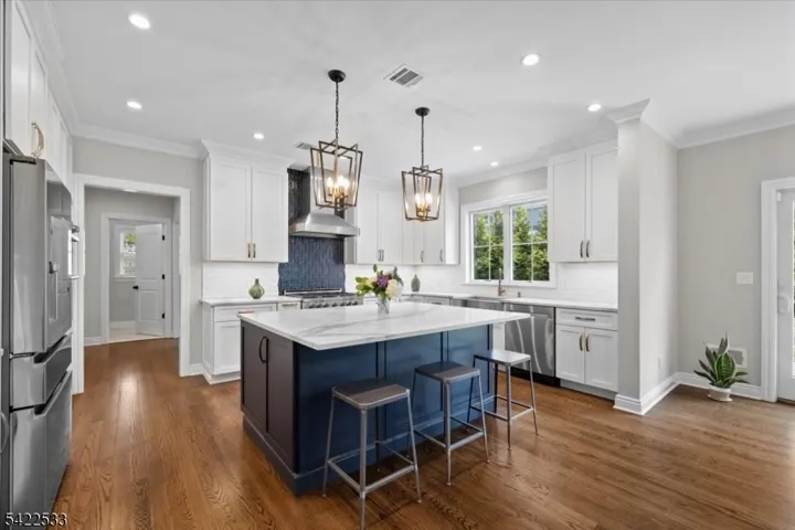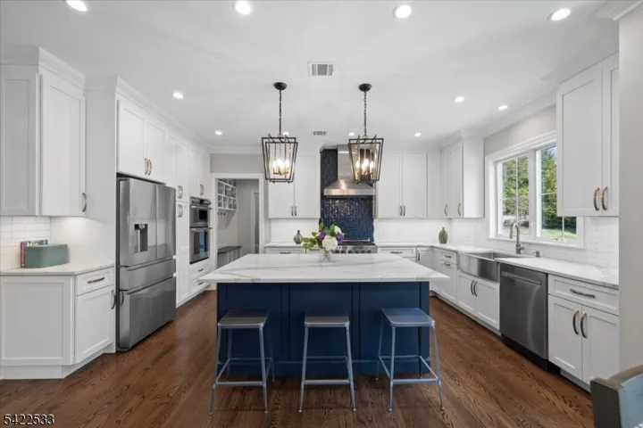 Custom-built center-hall colonial, just 5 years young & nestled in one of Bergen County’s most coveted communities: Wyckoff. Renowned for top-rated schools, recreation, NYC transp, fine dining, & shops. This meticulously crafted home makes an unforgettable first impression with its striking HardiBoard & stone exterior, paver patio w/firepit, & gorgeous double front door entry. Every inch reflects thoughtful architectural detail; red oak HW, intricate millwork & tray ceilings. The two-story entry foyer adorned w/herringbone HW floors flows seamlessly into a traditional yet open layout. The formal LR opens gracefully to a warm and inviting FR, complete with custom cabinets w/built-in shelving, gas FP, & coffered ceiling. The open-concept design is an entertainer’s dream, extending naturally to chef’s kitchen featuring center island, quartz countertops, Dacor appliances, & sliding doors leading outdoor patio. Upstairs, the luxurious primary suite offers two spacious WIC and a spa-inspired en-suite bath. Two additional BR’s are thoughtfully connected by a dual bath featuring double sinks & a private water closet. A fourth en-suite BR boasts its own elegant bath w/herringbone tile. Completing the 2nd floor is an oversized laundry w/cabinetry & quartz. Unfinished basement w/3windows (one egress) & plumbed for future bath for rec rm. Amenities:sprinklers, heated garage, multi-zone HVAC, municipal water and sewer, & generous .518-acre lot w/room for pool. Owner has RE license.
