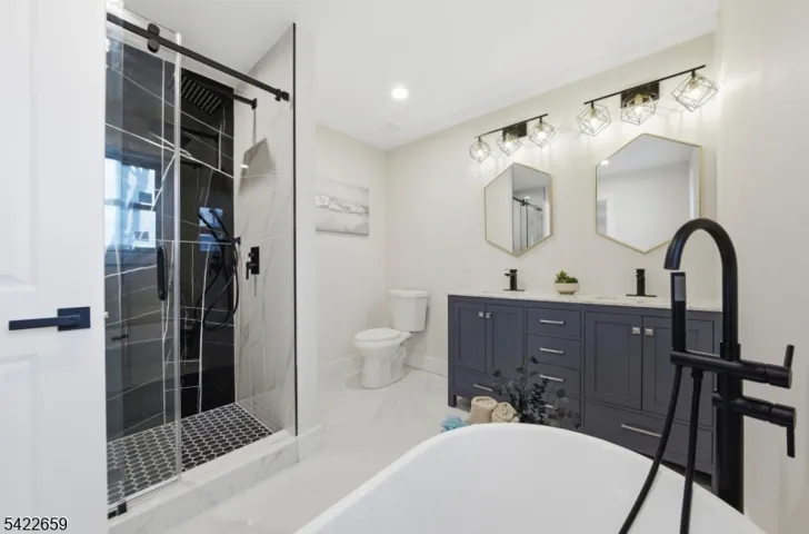 A brand-new half-duplex thoughtfully designed for modern living, this two-story home impresses with a first floor that blends living, dining, and kitchen into an open-concept space that invites effortless entertaining and daily comfort. A convenient half bath on the main level adds guest-friendly practicality, while expansive sightlines and well-placed natural light create an inviting atmosphere. The second floor prioritizes privacy and flexibility: two bedrooms share a full bath, and an additional room with its own bath and walk-in closet offers a versatile space that can function as a home office, guest room, or den. The master bedroom stands out with a generous walk-in closet and a luxurious en-suite that features a free-standing tub, a separate shower, and a double vanity, delivering a spa-like feel in the comfort of home. Completing the second level is a convenient laundry room, enhancing daily routine efficiency. Outside, a spacious backyard opens to a paver patio, perfect for outdoor dining, relaxation, and entertaining in a low-maintenance setting. This new construction combines modern finishes, energy-efficient design, and a thoughtful layout that maximizes privacy and flow. With everything on a fresh slate, you can enjoy the ease of a brand-new home without the wait.