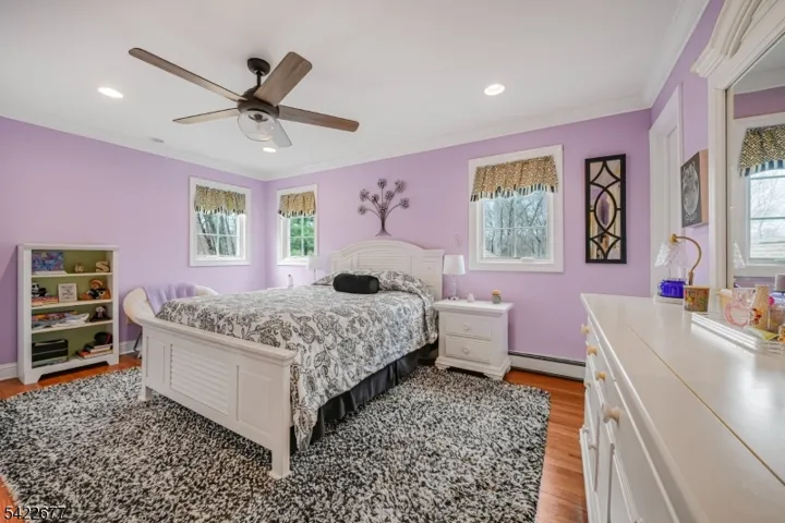 Expanded living layout with separate private suite, ideal for extended flexible living. This home features an updated Kitchen with custom cherry cabinets, paneled stainless steel appliances, Thermador cooktop/double ovens, Subzero Refrigerator, granite countertops, center island, wet bar w/sink and wine cooler. Hardwood floors throughout, updated flooring on the first floor and primary bedroom. Family Room includes a gas fireplace with stone surround. Custom moldings throughout. Primary suite offers tray ceiling, dual walk-in closets with custom built-ins, en-suite bath with tiled shower, granite seat, body sprays, frameless glass door, and granite vanity. The 2nd level includes a Junior Suite, three additional Bedrooms with walk-in closets and a full hall Bath. Other outstanding features include central vacuum, security system, and built-in audio wiring. Private two-room Suite with separate entrance includes Living area, Bedroom, walk-in closet, gas fireplace, full bath, and Kitchen with custom cabinetry, sink and microwave. Additional features include a Mudroom, Laundry Room w/utility sink, built in ironing board, and storage space. Step outside to enjoy a fully fenced, professionally landscaped yard with underground sprinklers, paver walkways and patio, bluestone porches, a Belgium block driveway, a charming gazebo with solar lighting, and storage shed, perfect for relaxing or entertaining outdoors. Tree-lined street with easy access to major highways and commuter routes.