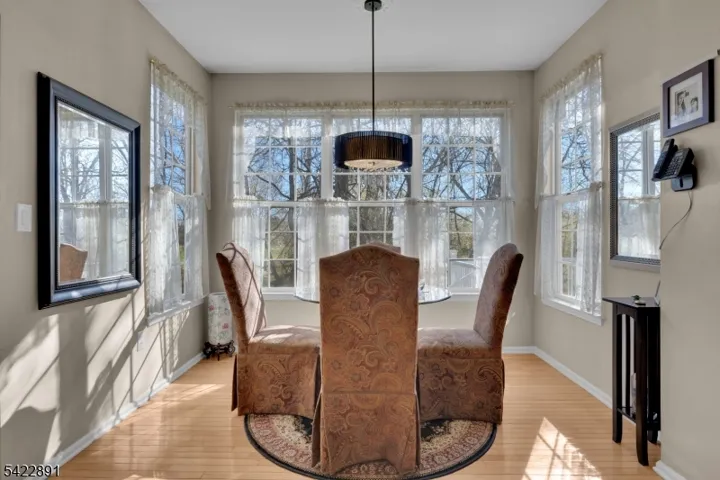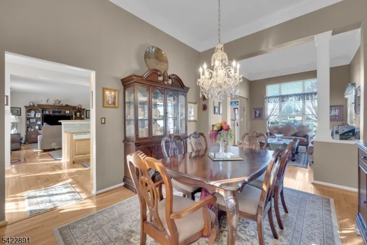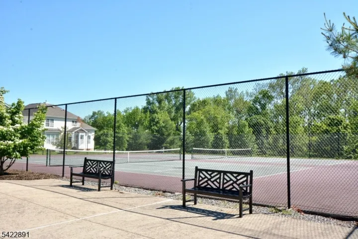 Welcome to 33 Pony Lane. Located within the sought-after Carriage Gate development, this Villa home presents the elegant Belmont Model. This beautiful residence boasts three bedrooms, two and a half baths, a partially finished basement and a two-car garage. The 2-story foyer displays custom trim, elegant chandelier with lift, solid oak staircase, hardwood floors that lead into living room with columns framing the entryway to the dining room. The eat-in kitchen features an extended breakfast room, tiled backsplash & light maple cabinets and opens to the Family room. French door leads to expansive, minimal maintenance composite deck that overlooks a private wooded oasis. Powder room features a pedestal sink. Laundry room presents a custom counter area with utility sink, loads of cabinets & washer-dryer. Direct entry to garage completes the main level. The primary bedroom offers two walk-in closets and an ensuite bath with a soaking tub, stall showers and double sinks. Main bath with tub/shower and two additional bedrooms completes the 2nd level. Inside entrance to partially finished basement provides additional hobby or recreational space. 50-year roof installed in 2025, High Efficiency 2-zone furnace in 2024. A/C compressor in 2023. On-demand hot water heater in 2024. Residents can enjoy community amenities such as a clubhouse, outdoor pool, tennis, basketball and volleyball courts, a jogging path and playgrounds.