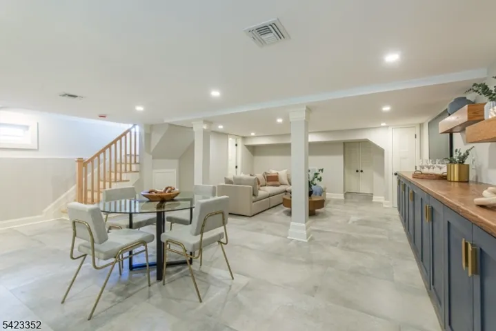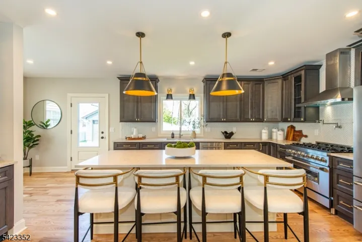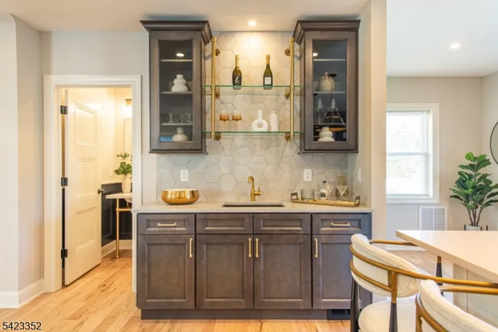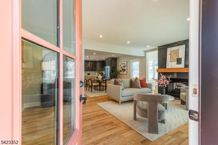 This newly Renovated Contemporary Colonial is set along one of Bloomfield’s beautiful tree lined streets, where classic refinement meets modern luxury. A dramatic front entrance with a striking glass door, curated lighting, and expansive windows creates a warm welcome at dusk. The home offers four bedrooms, four full baths, and a first floor powder room. The spacious living room with a two sided fireplace opens to an additional sitting room, while oak hardwood flooring flows throughout. The bespoke kitchen and wet bar feature custom cabinetry, Calacatta quartz countertops, Klien appliances, and a walk in pantry. The primary suite is a sanctuary with a spa inspired bath, a walk in shower for two, rich finishes, a custom closet, and oversized windows framing mesmerizing views. Additional bedrooms are generously sized, filled with natural light, and include custom closets. A serene third floor suite provides an extra bedroom, den, and full bath with treetop vistas. The inviting family room offers custom built ins, a full bath, and a dedicated laundry room. From the kitchen, step onto your private deck and custom patio overlooking an expansive yard with newly planted landscaping and full property irrigation. The home includes efficient two zone heating and cooling for year round comfort. A modern tankless water heater provides endless hot water and energy efficiency. Privacy fencing completes the outdoor space, all moments from NYC transit, great amenities, and beautiful parks.
