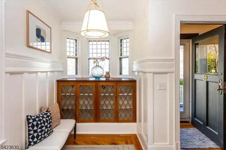 Brooklyn brownstone meets Montclair turn of the century in this South End beauty where a funky vibe & charming orig character come together. From the moment you arrive, the inviting wraparound porch sets the tone; perfect for morning coffee or relaxed afternoons. Inside, a gracious, open foyer welcomes you w/ a beautiful period staircase & a unique preserved built-in cabinet w/ glass drs. The first flr offers a seamless flow from the spacious foyer to a (sun-filled) living room & a sizable dining rm perfect for gathering, all rich w/ architectural details. 2 orig. tiled fireplaces, classic built-ins, high ceilings, wood wainscoting & intricate moldings that add warmth & charm throughout. The thoughtfully ren. kitchen blends modern convenience w/ personality, feat. stainless steel appliances, quartz countertops, & an adorable banquette ideal for casual dining.Upstairs, the wide staircase leads to 3 generously sized bdrms plus a versatile 4th rm currently used as an expansive WIC but easily adaptable as a home office or additional bedroom. A spacious, updated bathroom w/ double sinks completes this level. Third flr offers 2 addl bdrms & a full bath, a perfect spot for guests or WFH. Outdoors, enjoy entertaining on the rear patio or unwinding on the porch. Ideally located near 2 NYC-direct trains & just a short stroll to Montclair’s vibrant downtown renowned for its restaurants, cafes, shops, & arts scene. This home perfectly balances convenience, character, & style.