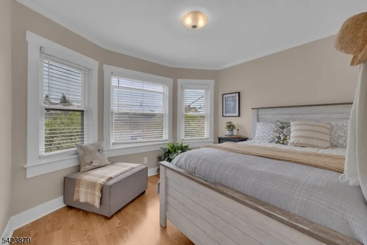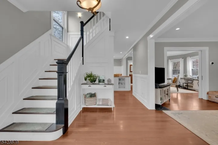 This beautifully maintained turn-of-the-century Colonial welcomes you with an inviting front porch and timeless charm. The home is surrounded by vibrant perennial gardens that provide color throughout the seasons. Step inside to a spacious foyer featuring warm wood trim and flooring. The generously sized living room and formal dining room, both with hardwood floors and recessed lighting, create an ideal setting for entertaining. The updated kitchen boasts a large granite center island, stainless steel appliances, granite countertops, hardwood floors, and high-quality cabinetry offering abundant storage. A convenient powder room completes the first floor. Upstairs, the second level includes four well-proportioned bedrooms. The updated bathroom features a custom vanity and ceramic tile flooring and surround. The third level offers a versatile, expansive space with a vaulted ceiling perfect as a bedroom, office, or great room along with wall-to-wall carpeting and two sizable closets. The full basement provides additional living space with a comfortable family room featuring recessed lighting and laminate flooring, ideal for relaxing or entertaining. It also includes laundry facilities, a workshop area, and ample storage. Just off the kitchen, a large deck overlooks a private, fenced-in backyard with a peaceful, park-like setting.