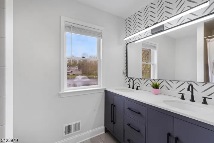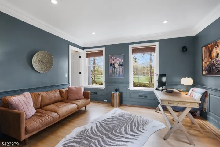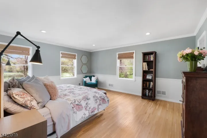 Welcome to “Lake View”- a flawless three-story lakeside Custom Colonial that personifies grace & practicality- brimming with special design features & expert craftsmanship – sited at the very end of Lake Road in the coveted Sunset Lake section of Chatham Twp with scenic lake, golf course, and park views from every room. 12 rooms including 6 bedrooms, 5 full baths, newly renovated powder room, 2 fireplaces, & many coveted features including rich custom millworker, stylish lighting, volume ceilings, abundant closets, specialty windows including skylights, wainscoting & refinished hardwood flooring throughout; gorgeous designer kitchen has custom cabinetry, granite countertops, newer stainless steel appliances, breakfast bar w galley seating & walk-in pantry; open floor plan gathering room features gas fireplace, wall of windows w views of Sunset Lake extending into adjoining kitchen, & easy access to patio. handsome den/home office, tasteful dining room w views of golf course; service area w mudroom & door to garage or rear yard; lovely powder room & discreet access to guest suite with full bath. 2nd floor features 3 spacious bedrooms & 2 full baths including primary suite, 3rd floor offers 2 additional bedrooms and full bath. The upper 3 floors offer 3,030 sq ft plus there is a sprawling finished lower level w full bath. 2-car attached garage, Telsa EV charger, public utilities, new roof, footpath to Castle Park, steps to Hickory Tree Shopping Center& walk to train