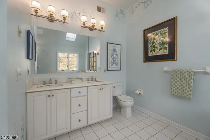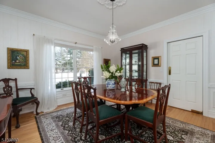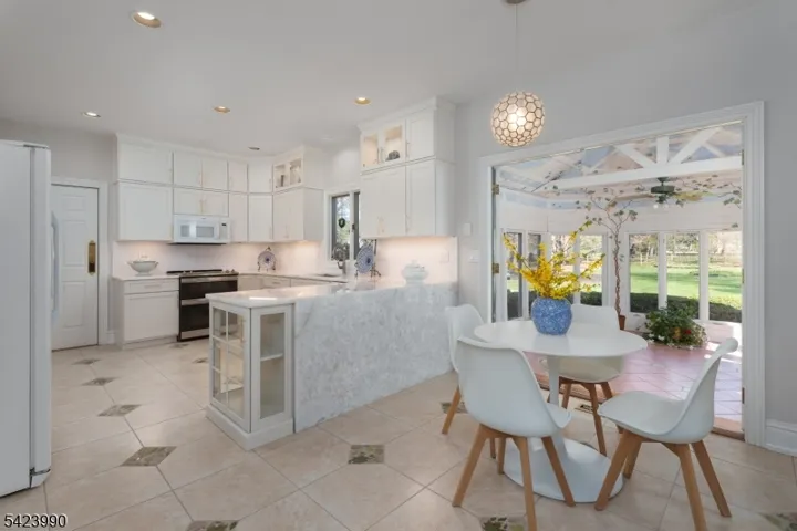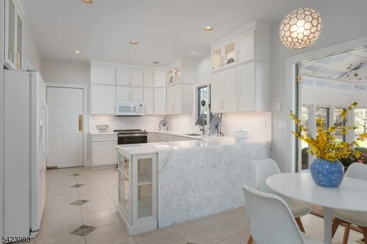In one of Belle Mead’s coveted neighborhoods, this Grosso-built architecturally rich and thoughtfully designed home personifies a custom built home. A beautiful leaded glass front door with matching sidelights creates a warm and memorable first impression; inside, light and craftsmanship take center stage, highlighted by a dramatic floor-to-ceiling leaded glass arched window overlooking the family room from the second floor. On the main level, a sunken living room and a formal dining room are enhanced by custom moldings plus a private library and a conveniently located powder room, with exceptional woodwork showcased throughout. The updated kitchen is a true showpiece with a waterfall backlit quartzite counter that creates a dazzling focal point and an inviting gathering space. Just beyond, a year-round sunroom leads to a true greenhouse, offering a rare opportunity for year-round growing. The backyard is fully fenced. Upstairs are four spacious bedrooms, including a primary suite with sitting areas, two walk-in closets, and a skylit spa bath featuring a jetted tub, dual sink vanity, and glass-enclosed shower. The hall bath offers a two-sink vanity, while one secondary bedroom features built-in bookshelves along its walls; another is designed as a generous two-room suite. Completing the home is an oversized three-stall garage offering exceptional space for vehicles, storage, and space for a workshop. Overall, a home of character, intention, and memorable architectural detail.