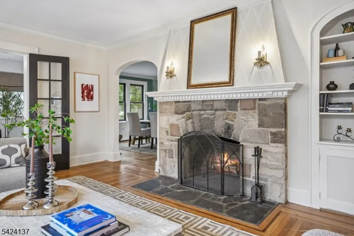 This beautifully updated five-bedroom, three-bath home blends timeless architectural charm with modern updates. A welcoming foyer sets the tone for the home’s character and generous proportions. Rich natural hardwood floors, several original leaded-glass windows restored to perfection, and a striking wood-burning fireplace framed in slate and stone create a warm, comfortable atmosphere. The spacious living room is filled with natural light, while French doors open to a stylish Family Room. Designed for both everyday living and entertaining, this home features a formal dining room and a thoughtfully renovated kitchen appointed with quartz countertops, custom cabinetry, stainless steel appliances, and a separate breakfast nook. The newly updated primary bath features fresh, contemporary finishes. Plus a new central air system and new windows throughout the home, ensure modern comfort. The property includes a two-car garage. An exceptional residence for those who appreciate timeless design and the comforts of contemporary lifestyle. Welcome home!