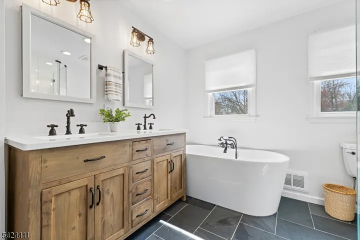 Welcome to this custom expanded split-level, anything BUT your average split! Set in a lovely neighborhood on a beautifully manicured grounds. Enter through the custom-made front door, a true piece of art, that immediately sets the tone for what’s inside. From the moment you step in, the WOW factor is undeniable, w/ soaring ceilings in the LR & DR that create an open, airy feel & an impressive space for everyday living & unforgettable entertaining. A 2006 expansive addition elevated this home to the next level. The stunning, oversized dining room is made for memorable gatherings, while the beautiful eat-in kitchen flows seamlessly into the expansive family room. Both spaces offer sliders to the gorgeous patio, creating a seamless indoor / outdoor experience. From backyard BBQs & cozy nights by the fire to game days & large holiday celebrations, this space is built to enjoy it all. This level also features a magnificent primary suite complete w/ a WIC & a spa-like bath. Upstairs, you’ll find 3 spacious bedrooms, all w/ custom closets, including one w/ its own en suite bath, great for guests or extended living. Extensive improvements include: Inside – 3.5 beautifully updated baths, flooring, railings, lighting, appliances, HWH, blinds, interior doors & hardware. Outside – roof, garage doors, underground sprinkler, & a gorgeous patio to name a few. 48 Hastings Rd is truly the total package – stylish, spacious, perfectly located & absolutely move-in ready!