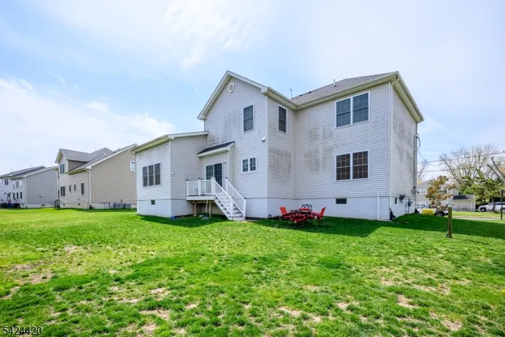 Welcome to 32 Pleasant Plains Rd, a spacious and well-appointed home offering approx. 3,123 sq ft of living space across a versatile and thoughtfully designed layout. The exterior combines stone and siding for timeless curb appeal, while the interior opens with a dramatic 2-story foyer and elegant staircase. The main level features formal living and dining rooms, a large family room with fireplace and soaring ceiling, and an open kitchen with white cabinetry, dark countertops, tiled backsplash, center island, and adjoining breakfast area. A first-floor bedroom and full bath provide added flexibility for guests, work, or extended living needs. Upstairs, the generous primary suite includes space for a sitting area, two walk-in closets, and a private bath with dual vanities, soaking tub, and glass-enclosed shower. Three additional bedrooms, additional baths, and a second-floor laundry room complete the upper level. Additional features include hardwood flooring in select rooms, a full basement offering storage or future finishing potential, an attached 2-car garage, a rear deck, and open backyard space. Well-proportioned rooms, inviting gathering areas, and a functional floor plan make this home ideal for everyday living and entertaining.