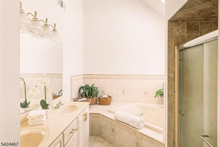 Welcome to 2 Moonlight Trail, a beautifully maintained center hall Colonial set on just over an acre in the desirable Country Classics neighborhood of Raritan Township. This sun-filled home features a dramatic two-story entry with cathedral ceilings, flanked by formal living and dining rooms, along with freshly painted interiors for a move-in-ready feel. The spacious kitchen offers stainless steel appliances, double oven, gas cooktop, granite countertops, a breakfast bar, and ample cabinetry, flowing into an informal dining area and a bright family room with soaring ceilings and a brick fireplace. Step outside to a raised deck, perfect for entertaining or relaxing. The first floor also includes a laundry room and a flexible office or guest bedroom with a full bath. Upstairs, the primary suite features a vaulted ceiling, walk-in closet, and ensuite bath with double vanity, whirlpool tub, and separate shower, along with three additional bedrooms and a hall bath. A finished walk-out basement provides versatile living space, complemented by a three-car garage and energy-saving solar panels, all conveniently located near Flemington, Lambertville, New Hope, and Princeton.