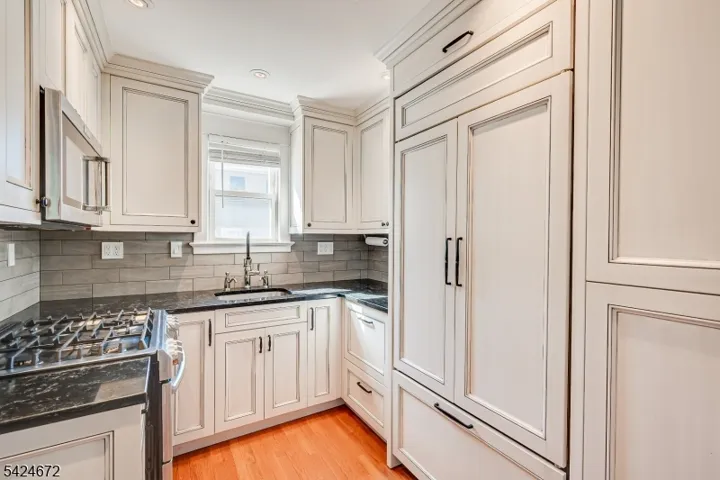 Beautifully renovated and thoughtfully reimagined, this architectural gem blends timeless craftsmanship with modern luxury offering a level of detail and design rarely found. Originally designed as a three bedroom home, converted into a spacious two bedroom layout. From the moment you enter, just off the front porch, you’ll notice the difference: architecturally accurate details, custom millwork, handcrafted pocket doors that reflect a level of craftsmanship and quality rarely found. Sunlight pours through replacement windows, illuminating rich oak hardwood floors that run seamlessly throughout both levels. The first level offers beautiful open living space: living room, dining room to chefs kitchen. Don’t miss the lovely home office and half bath. Custom designed kitchen is both striking and functional, featuring fully handcrafted wood cabinetry, with soft close, hidden storage space. A Chef’s dream kitchen with sleek black quartz countertops, a peninsula breakfast bar overlooking the dining area. Premium appliances include a paneled Sub-Zero refrigerator, Fisher & Paykel dishwasher, KitchenAid Suite and Samsung digital oven, all bring an elevated finish. The primary suite offers a sitting area, large closet space and ample sunlight from front and both side views of the home. Upstairs full bathroom offers custom cabinetry, rich black quartz, gorgeous subway tiled showernd, jetted tub and full glass door to tub/shower.