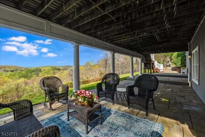 This refined residence, set on 4.21 acres in one of Chester’s most coveted neighborhoods, provides sweeping views as far as the eye can see, creating a sense of awe, but also peace & warmth. The thoughtful layout supports both everyday living & entertaining w/ equal ease. A grand mahogany front door opens to interiors rich in architectural detail, including vaulted ceilings, custom molding & 5 fireplaces. The dramatic 2-story great room anchors the main living level, while the updated kitchen, equipped w/ high-end appliances, connects seamlessly to gathering spaces designed for both casual use & formal occasions. A private office w/ 2 sets of French doors, custom bookcases & FP provides an elegant & quiet workspace. Five bedrooms & 5.1 baths include a first-floor en suite bedroom & an exceptional primary suite on the second level, w/ a private sitting room featuring a FP & wet bar, a spacious bedroom, a spa-inspired bath & an expansive WIC. An additional en suite bedroom offers its own distinctive presence w/ an updated bath, large custom WIC & coordinated chandelier detailing. The finished lower level expands the living experience w/ a spacious recreation room, sitting room w/ FP, exercise room, home theater, full bath, & walkout access to a wide slate patio. Add’l outdoor spaces are equally compelling, highlighted by a beautiful Ipe deck overlooking the landscaped grounds & valley, an entrance fountain, a garden sitting area & a paver-lined driveway w/ generous parking.