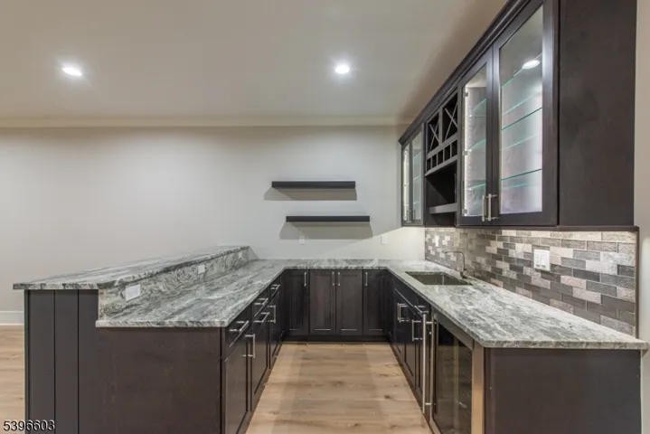 Experience elevated living at 24 Cliffside Drive, Livingston, an exquisite new construction estate spanning approximately 6,500 sq ft of refined design and craftsmanship.This 5-bedroom, 6.5-bath luxury home combines timeless architecture with modern sophistication, offering the ideal blend of comfort, function, and style. Step inside to a grand foyer that opens into bright, open-concept living spaces adorned with custom millwork and oversized windows. The chef’s kitchen is the centerpiece of the home, featuring a striking double-profile quartz island, matching full-height quartz backsplash, professional-grade appliances, and a butler’s pantry for effortless entertaining. The adjoining kitchen and living room are anchored by a sleek fireplace, while a second fireplace enhances the formal dining room’s elegant ambiance. Upstairs, retreat to the primary suite with a spa-like bathroom, custom walk-in closet, and a private balcony overlooking the grounds. Two additional balconies provide peaceful second-floor escapes. The fully finished basement expands the living space with a wet bar, wine cellar, media area, and recreation space, perfect for gatherings or relaxation. Outdoors, enjoy a covered patio with a outdoor kitchen, ideal for year-round entertaining. The stone and stucco exterior, three-car garage, and 10-year builder’s warranty complete this extraordinary offering. 24 Cliffside Drive redefines modern living in one of Livingston’s most sought-after neighborhoods!