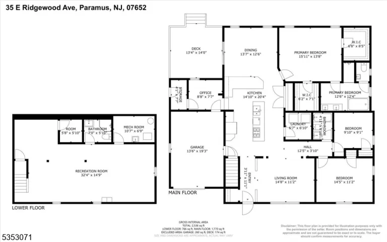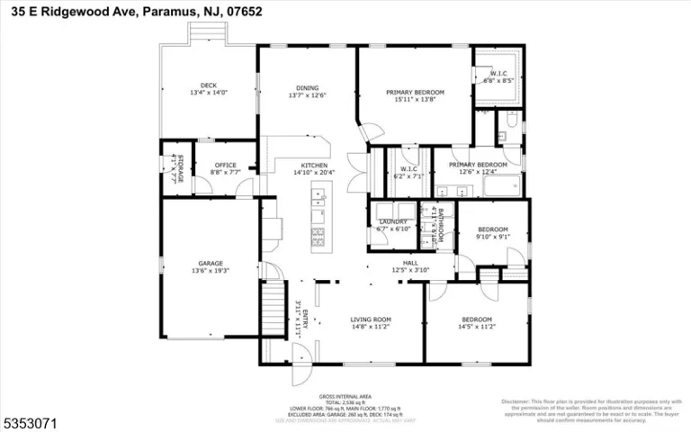 Charming one-story Ranch. A freshly painted whole house inside. This home offers Living Room, Eat-In Kitchen, Primary Bedroom/Fbth, Bedroom, Bedroom, Fbth, Laundry Room and Dining Room provides direct access to a beautiful deck and spacious backyard, perfect for outdoor enjoyment. Additionally, the home features a finished basement, rec room, fbth, utility room and cedar closet. Enjoy the convenience of one-level living, just minutes from NYC transportation, Valley Hospital, shopping, and schools.