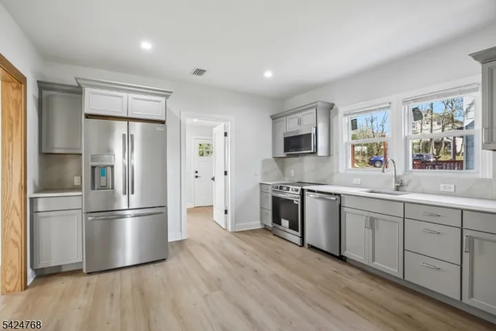 Fully renovated and truly move-in ready, this 3-bedroom Sussex Boro home blends classic charm with thoughtful modern finishes throughout. Inside, you’ll find bright, comfortable living spaces and a beautifully redone eat-in kitchen featuring shaker cabinetry, quartz countertops, stainless steel appliances, and a clean, modern design that feels both stylish and practical. Rich wood tones and finishes add warmth and character throughout the home. The layout offers great flexibility, including a bonus rear room with its own powder room and direct access to the backyard ideal as a mudroom, home office, or additional living space. Upstairs, the bedrooms are well-sized and complemented by an updated hall bath, along with a primary suite featuring a sleek, modern en-suite. Expanding the home’s functionality, the spacious finished basement offers versatile space for recreation, storage, or a home gym, contributing to a total of approximately 2,000 sq ft of living space. Set on a level lot, the home features a standout wraparound covered front porch that adds charm and curb appeal, along with a long driveway and a spacious detached garage. Sitting on an oversized lot, the backyard offers a patio area and plenty of room to relax or entertain. Tucked on a quiet street yet just a short walk to local shops, dining, and everyday conveniences. Easy access to Route 23 and nearby NYC bus options makes commuting simple. A well-executed renovation with nothing left to do just move in and enjoy.