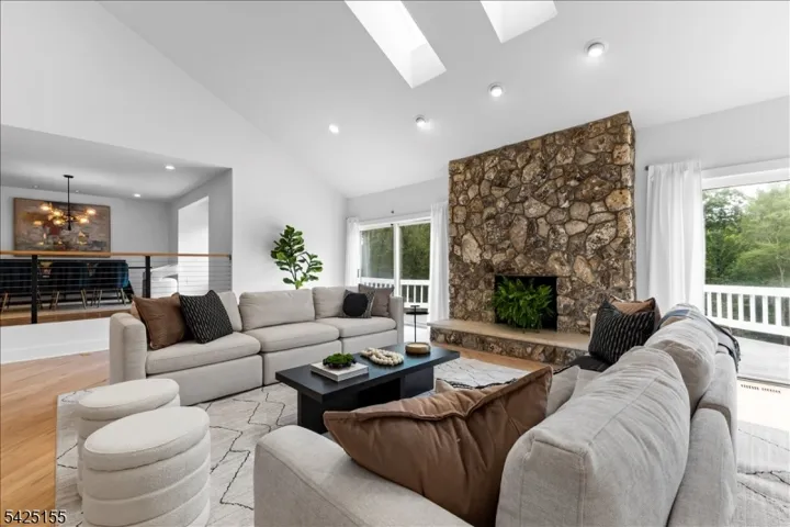 Modern masterpiece located on private 5 acre lot! Enter into a 2-story foyer leading to a skylit great room with FP open to a generously sized formal dining room. A 1st floor bedroom with bath offers a versatile space, work from home in a 1st floor office and enjoy the spacious kitchen with adjoining family room and solarium.The 2nd floor primary suite features a gas FP, cathedral ceiling, deck,16 x16 sitting room, two immense walk-in closets and a stunning nearly new spa like bath. Three additional bedrooms, two newer baths(1 ensuite) and an airy loft complete the second floor. More space is found in the finished walkout with large rec room, kitchenette, newer full bath, music room, craft room and storage. 3- car garage with Tesla charger. Yard offers firepit area,gazebo, and basketball court. New five bedroom septic installed 2026. Two new sets of sliding doors in living room 2026. Superb location on a cul-de- street not far from center of town, shopping, NYC trains and highways.