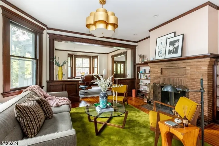 Perfectly situated in Montclair’s coveted Erwin Park neighborhood, this charming Craftsman Colonial offers a seamless blend of classic design and thoughtful modern updates. A warm and inviting foyer welcomes you with a handcrafted reception bench and beautiful chestnut woodwork that carries throughout the home, highlighting its timeless character. The kitchen has been expertly renovated with high end designer finishes, delivering both style and function, while heated floors in the kitchen and primary bath add an extra layer of everyday luxury. Step outside to enjoy a custom Ipe Brazilian hardwood deck and rear patio, ideal for entertaining or unwinding, along with a covered front porch that serves as a front-row seat to the neighborhood’s renowned block party and unforgettable Halloween celebrations. Just moments from Edgemont Park, enjoy year-round recreation including the Fourth of July festivities, playground, and winter ice skating. Additional upgrades include newly installed mini-splits in the bedrooms, full-house insulation for comfort and efficiency, fresh landscaping, and a recently painted exterior. A finished basement provides valuable bonus space, and NYC train and bus service just down the block makes commuting a breeze.