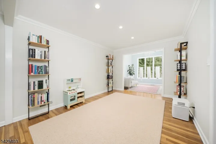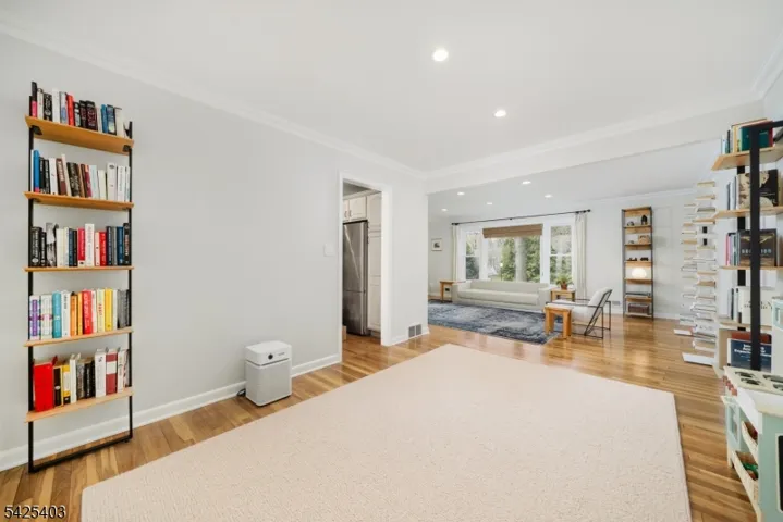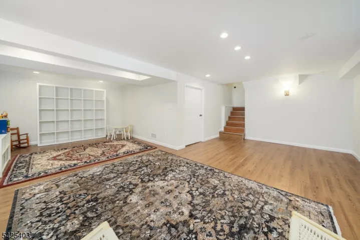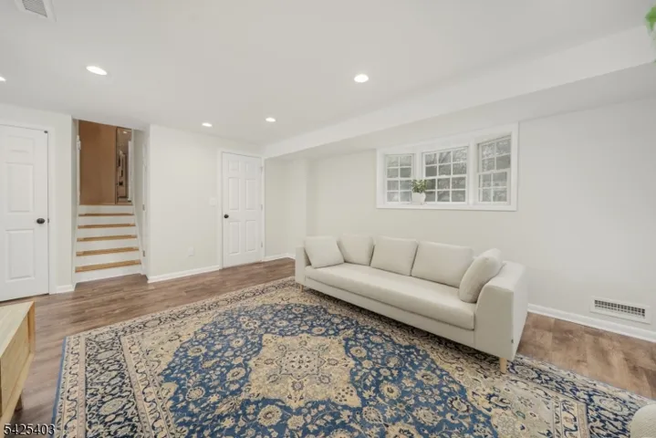 This beautifully maintained 5BR, 2.1BTH home with open concept kitchen/floor plan offers the buyer flexibility and LOCATION! This home is located on a picturesque tree lined street just two blocks to Salt Brook Elementary School and 0.5m to the New Providence Train Station/Bus to NYC Port Authority. Upon entering, the ground floor offers a gracious open foyer, bedroom/office, powder room and large family room with egress to back yard. There is also a mudroom with inside garage entrance for convenience. The first floor offers a versatile floor plan with living room, dining room, eat-in kitchen (induction range) w/ breakfast area and bonus sitting room. The breakfast/sitting room has ten tall windows basking the room in natural light, a cathedral ceiling and door out to the patio. The second floor offers three bedrooms and hall full bath. One of those bedrooms is the primary suite with full bath. The third floor offers an expansive 5th bedroom with lush new carpet. An abundance of walk-in closet space offers flexibility to convert for another future en-suite bedroom. There is also a basement with finished recreation room / exercise room, laundry & utility room. Outside be captivated by the spacious level yard offering a relaxing oasis for future entertaining! Large paver patio with access to kitchen and family room. Besides proximity to train, bus and award winning schools, you are only two blocks to Lions Park, and 0.8m to vibrant downtown NP restaurants and small businesses.