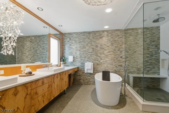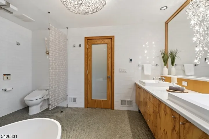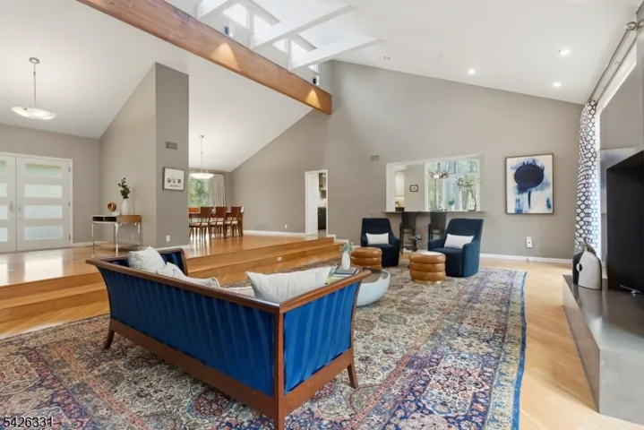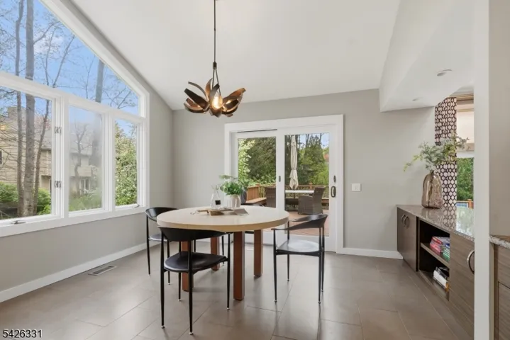 Welcome to this beautiful 4-bedroom, 3.5-bathroom contemporary home, ideally located on a quiet cul-de-sac in Morris Township. The home offers an open layout with abundant natural light, designed for both everyday living and entertaining. The living, dining, and kitchen areas connect seamlessly, creating a comfortable and functional setup. The kitchen features a large center island and radiant heated floors, making it a natural gathering space. All main living areas on the first floor lead directly to the back deck.The primary suite serves as a private retreat, complete with two walk-in closets, a dressing area, and a bathroom with radiant heated floors. Three additional bedrooms provide ample space, along with a family room and dedicated home office. Custom cabinetry and closets can be found throughout the bedrooms and bathrooms.The finished basement offers additional living space and includes a custom 800 bottle wine cellar. An oversized two-car garage adds convenience and extra storage. Outside you will find a huge back deck with beautiful landscaping and native plant garden. Set in a flat neighborhood, this home offers a great setting for outdoor use, all just minutes from downtown Morristown’s shops, restaurants, and NJ Transit.